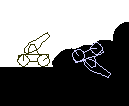 The vectors can have a maximum dx and dy of 8 pixels (meaning they can be upto 11 pixels long if diagonal) this is because my routine uses pre-canned sequences to draw each vector to be as fast as possible .. a different pre-canned sequence exists for every possible dx and dy vector dimension combination... so to allow for longer vectors the permutations that have to be precanned would start to get unweildy and make the program much larger. In theory you could adapt this routine to draw longer vectors or if the compiled code of this routine is too large for your system you could reduce the maximum vector dimension (5x5 is a handy one because if you sketch something on traditional graph paper there are thicker divisions every 5 divisions making it easy to read-off the values). To do this you'll need to down load and modify the Quick BASIC program I wrote that generated much of the routine's source code automatically. Click here to download the source code generator program.