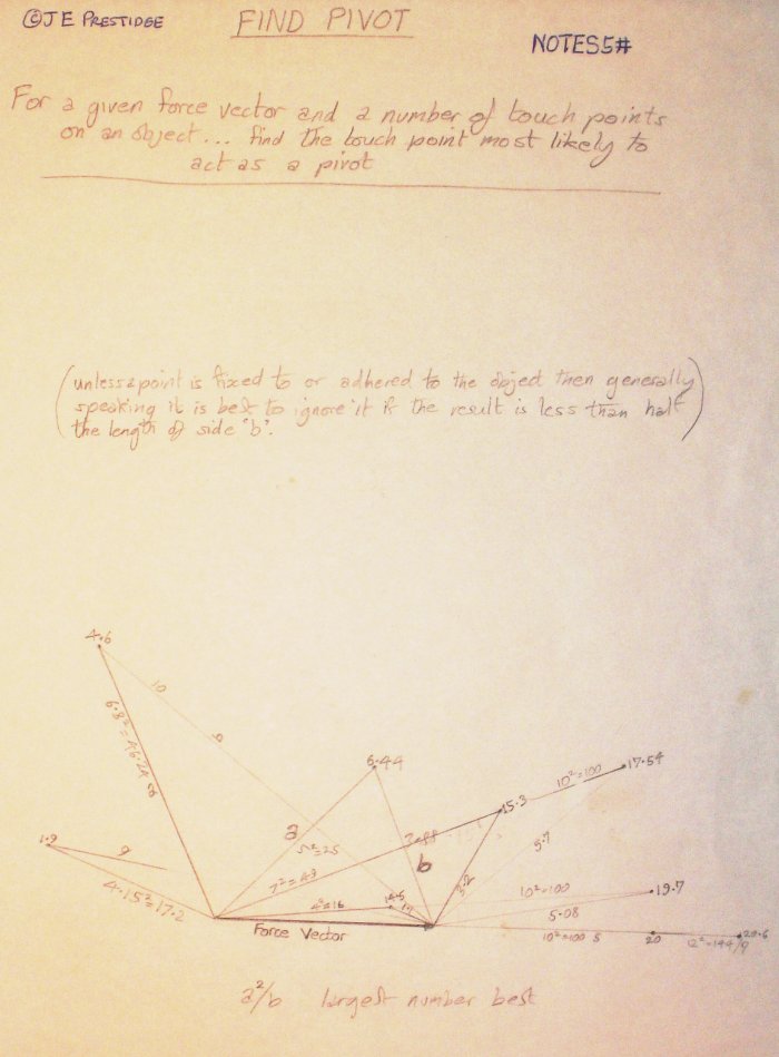 This is only a simple approximation method for game programming I came-up with after some experimentation and does not account many factors -- for instance it assumes all the points it touches are stationary and immoveable.